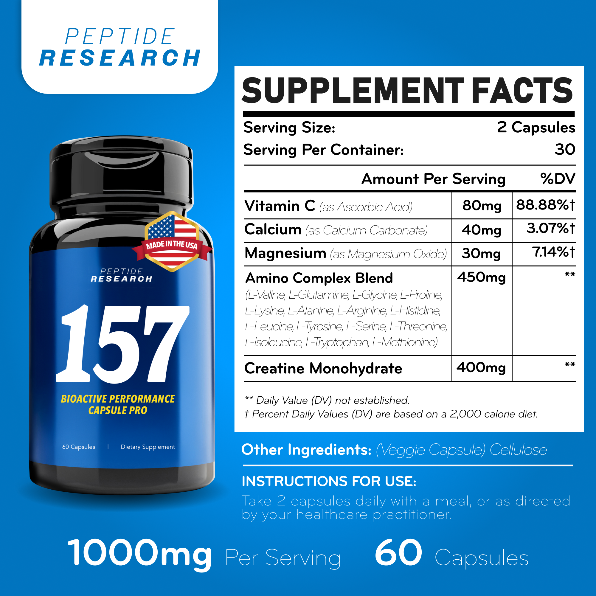 Peptide Super BPC 157 Complex 1500mg – Body Balance & Performance | Energy & Strength Support | 60 Capsules