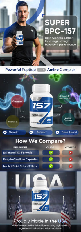 VITAPILL Super BPC 157 Complex is made with care and transparency. It is non-GMO, gluten-free, and soy-free, with no artificial additives. Manufactured in the USA in a GMP-certified facility, every batch follows strict quality and safety standards to ensure consistency and purity.